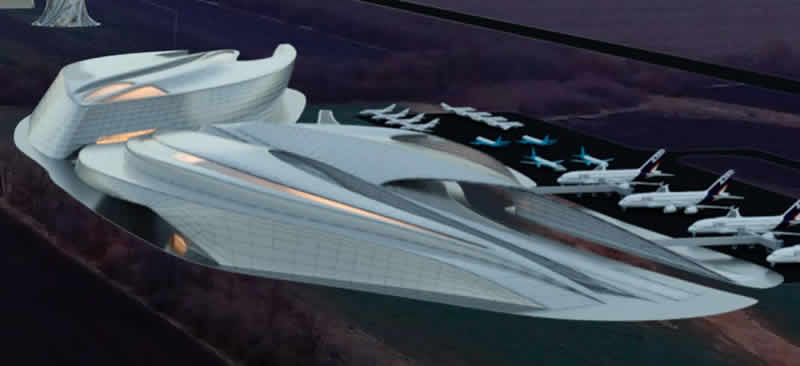 В сети появились эскизы нового аэропорта, который планируют построить на границе между Днепром и Запорожьем. Соответствующие фото опубликовал на своей странице в Facebook член союза архитекторов Украины Петр Декальчук.
