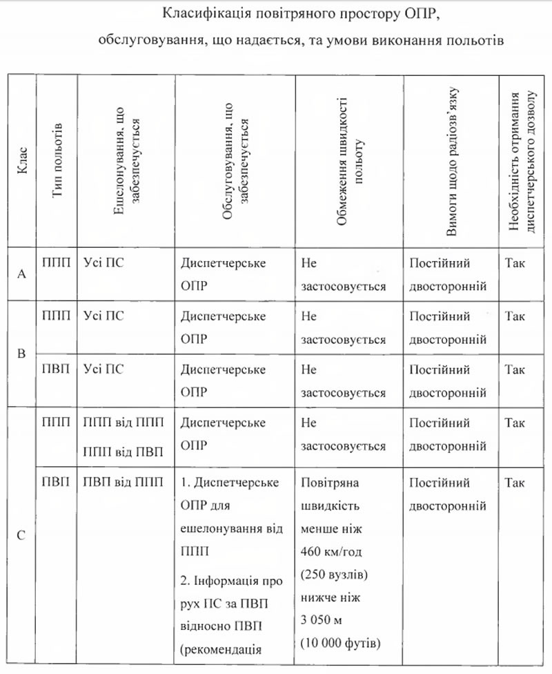 **** - повітряний простір класифікується відповідно до класифікації навколишнього повітряного простору ОПР