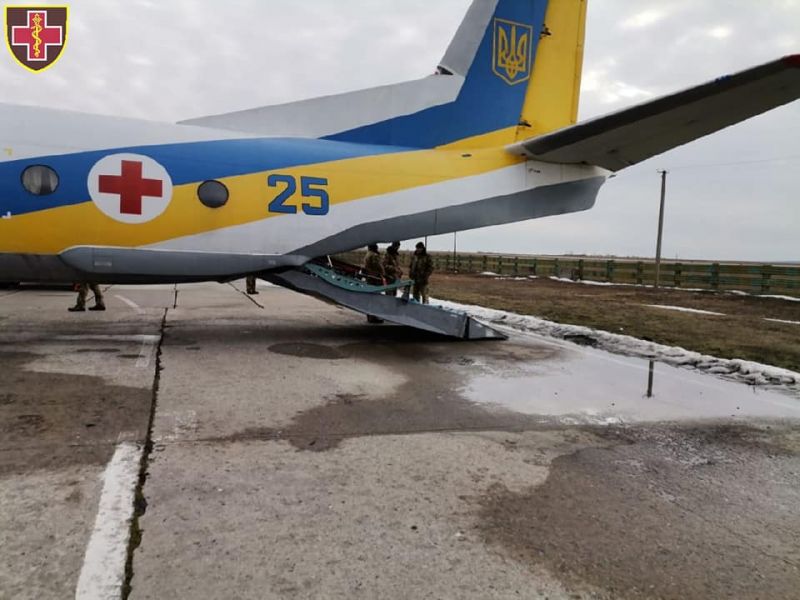 С помощью реанимационно-операционного самолета Воздушных Сил Вооруженных Сил Украины Ан-26 "ВИТА" двое раненых и один больной военнослужащий прибыли на военный аэродром. Раненых военнослужащих специализированным транспортом доставили в Национальный военно-медицинского клинического центр "ГВКГ" в Киеве. Больной военнослужащий для дальнейшего лечения направлен в Военно-медицинский клинический центр Центрального региона в Виннице.