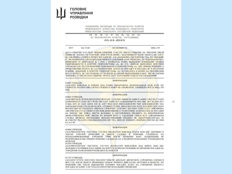 Головне управління розвідки Міністерства оборони України провело складну спеціальну операцію у кіберпросторі, внаслідок якої вдалось здобути великий обсяг закритих службових документів структурного підрозділу міністерства транспорту рф - “фєдєрального аґєнтства воздушного транспорта” (“росавіація”).