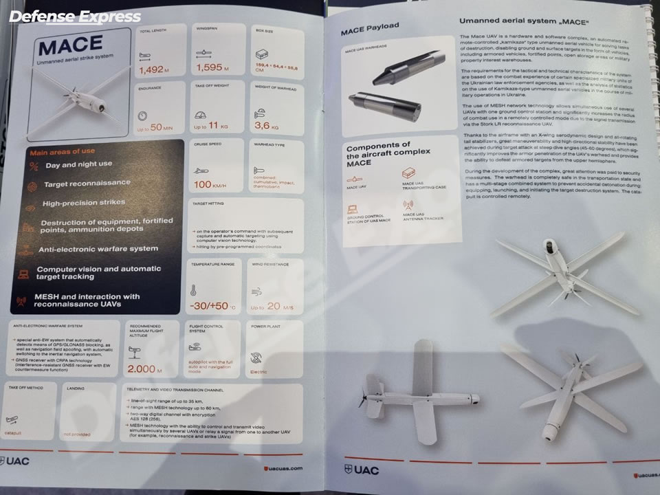 Дрон представлений компанією UAC на стенді Національної асоціації підприємств оборонної промисловості України (NAUDI). У брошурі він названий Mace, але напис на крилах прямо говорить, що його оригінальна назва саме українська - "Булава".