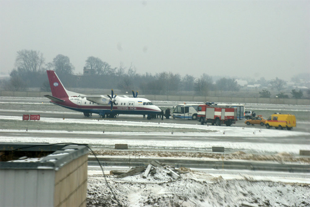 В аэропорту Борисполь во время посадки самолета UR-14005 Авиакомпании Мотор Сич случилось происшествие. Самолет остановился на магистральной рулежной дорожки, где и были высажены пассажиры.
